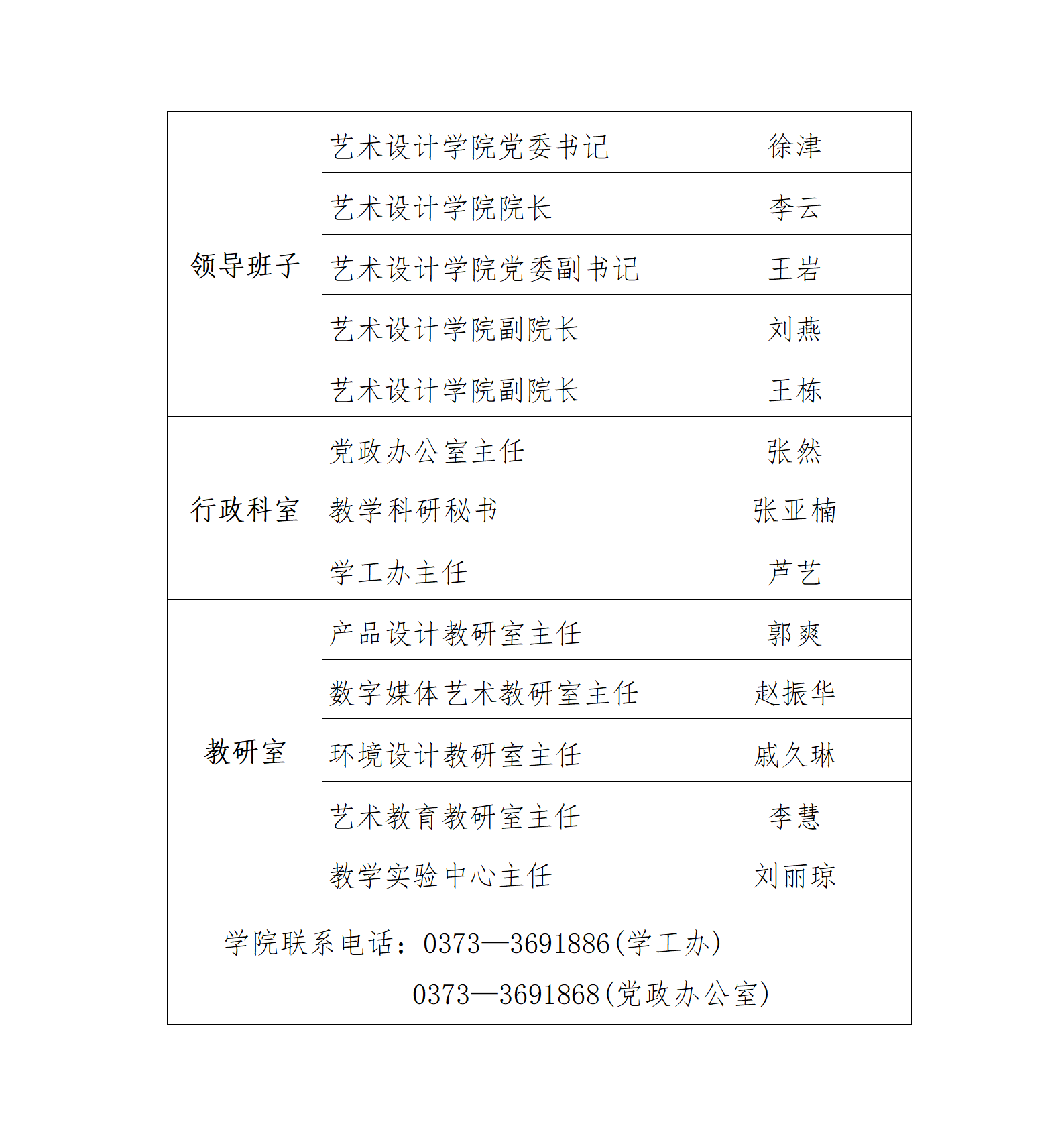 艺术设计学院机构设置
