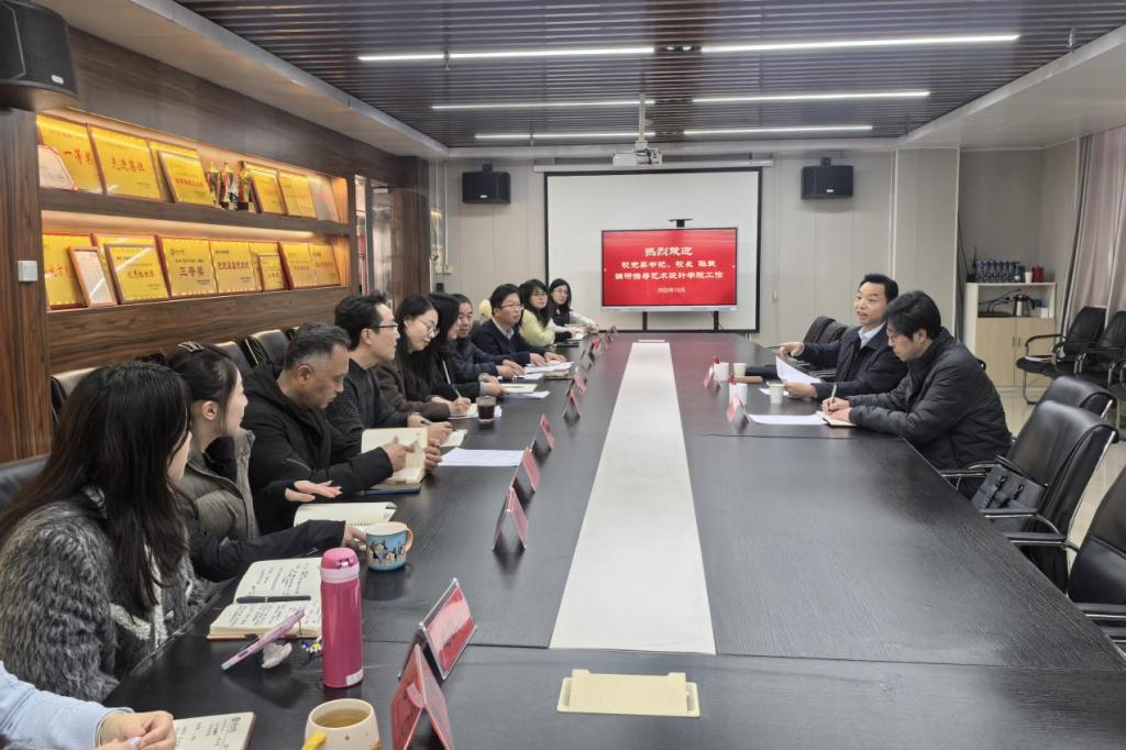 12月17日下午,校党委书记、校长孙斌深入艺术学院调研指导,校长办公室孙文琦陪同。艺术学院全体领导班子成员、科级干部及博士教师代表参会,会议由学院党委书记徐津主持。