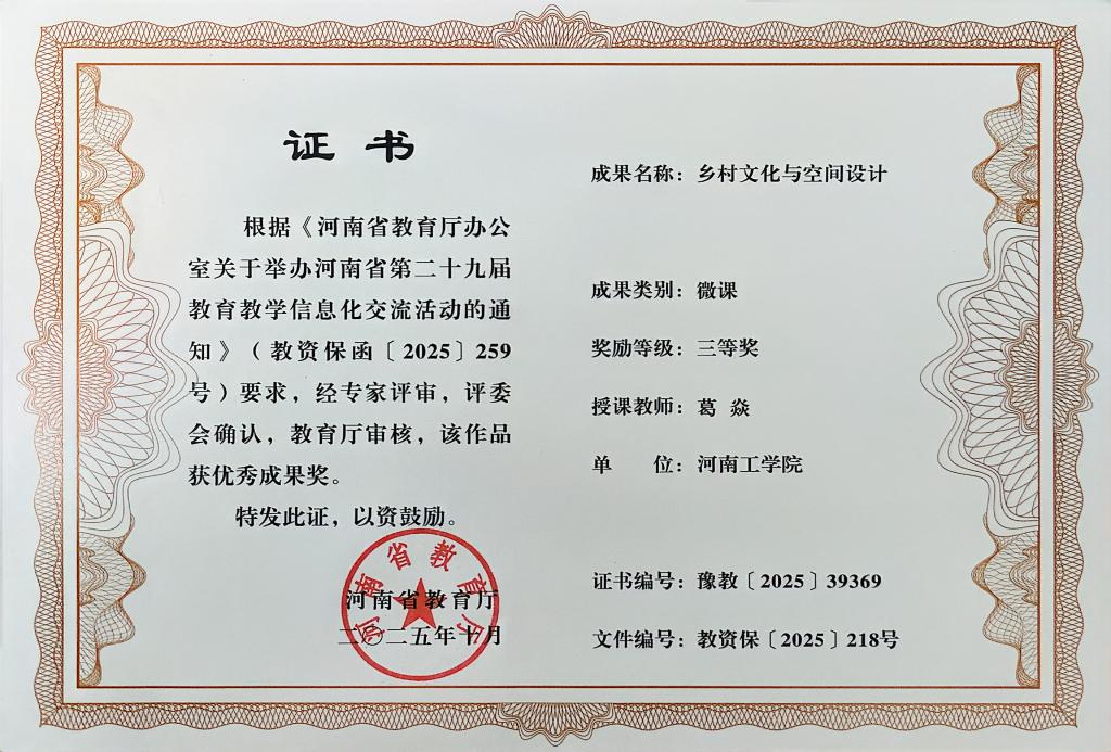 我院教师获河南省教育厅“第二十九届教育教学信息化交流活动”三等奖