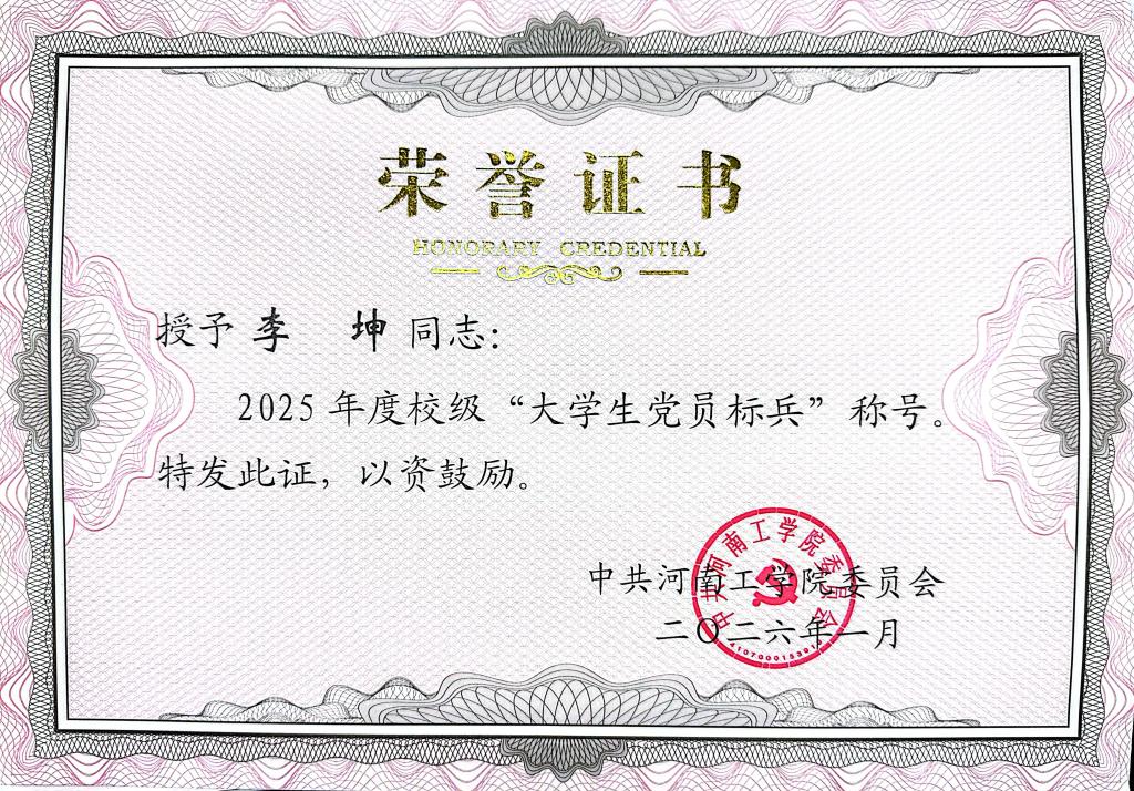 我院学生荣获2025年度校级“大学生党员标兵”称号