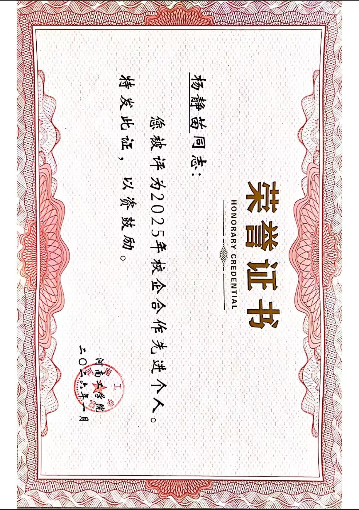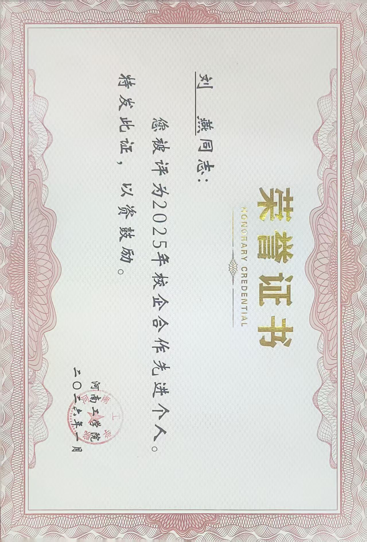 我院教师荣获我校2025年校企合作先进个人奖