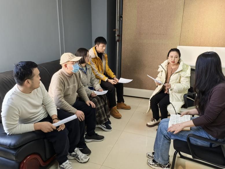 会上,各位博士首先汇报了对上次论证会所提意见的修改进度,并交流了资料查阅方法和心得。有的博士已经基本完成资料收集工作,准备开展下一阶段的仔细研读;有的则对实践部分阐述自己的规划,对预期成果提出严谨设想。韩冬博士认真听取了三位博士的汇报,并对课题申报书的撰写方法、自己申报课题的思路与心得进行了分享总结。